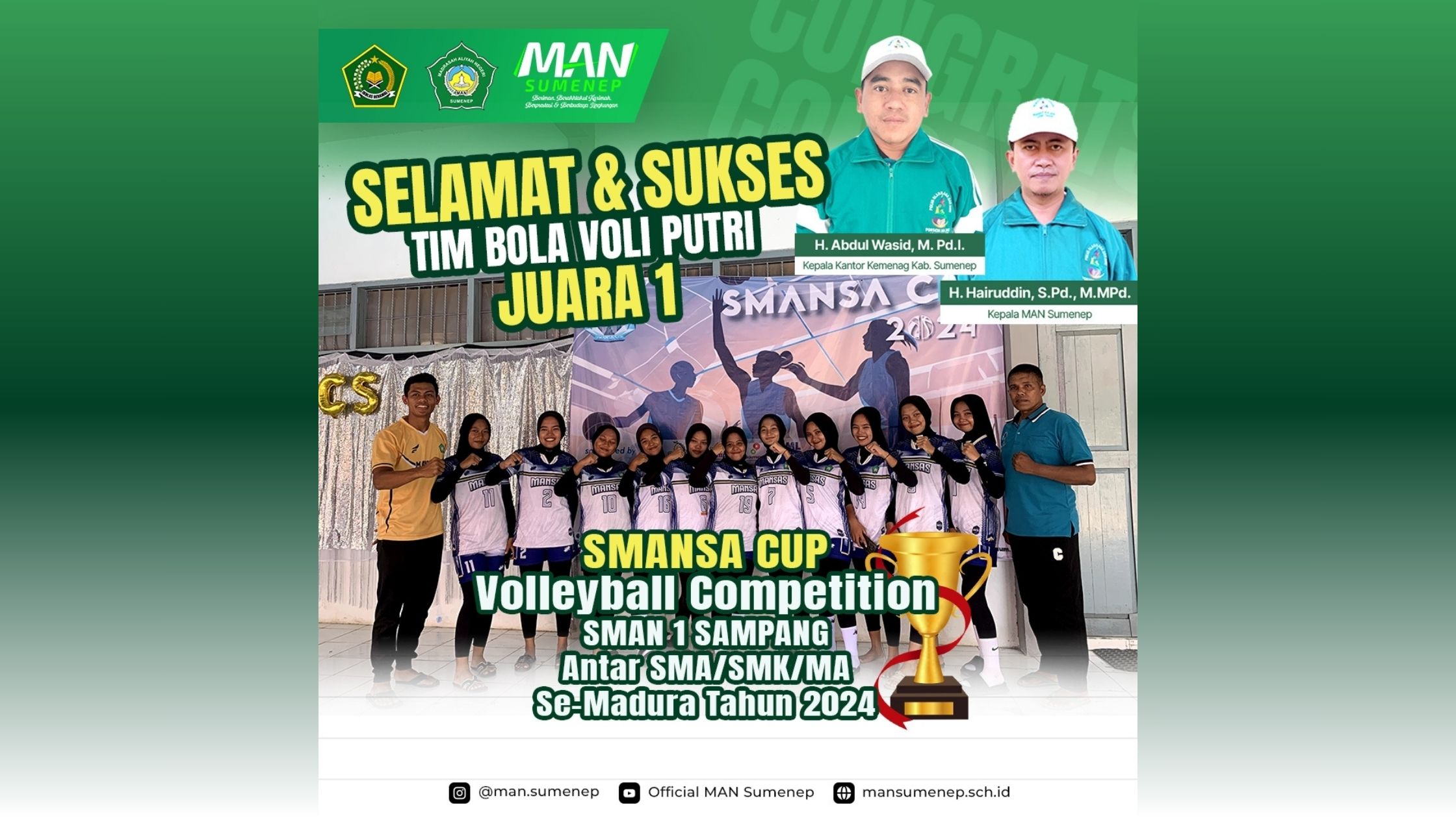 MAN Sumenep – Jurnalistik – Tim Putri Bola Voli MAN Sumenep, berhasil meraih juara 1 dalam turnamen voli antar SMA/MA/SMK/sederajat se-Madura di lapangan SMAN 1 Sampang (19/10/2024). Tim putri bola voli MAN Sumenep tampil mengesankan sejak awal turnamen dengan memenangkan semua pertandingan di babak penyisihan. […]