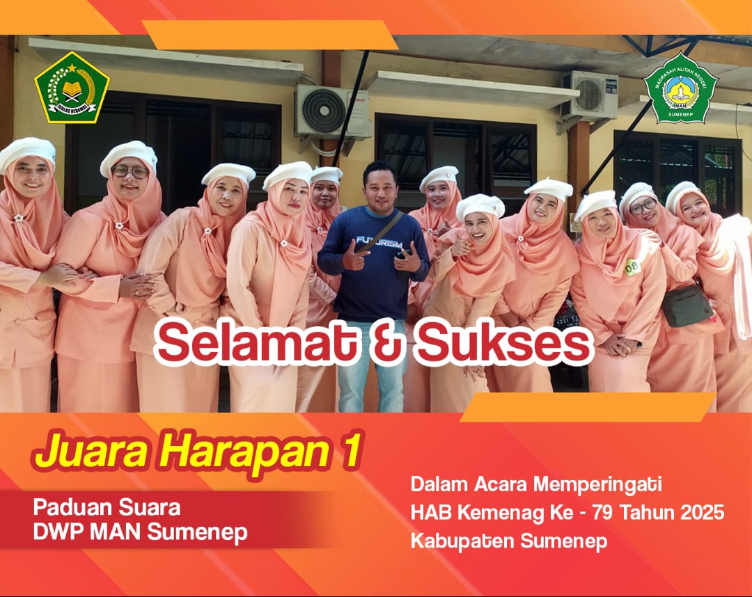 MAN Sumenep – Jurnalistik – Tim Paduan Suara MAN Sumenep berhasil meraih Juara Harapan 1, dalam ajang Lomba Paduan Suara yang diselenggarakan oleh Dharma Wanita Persatuan (DWP) Kantor Kementerian Agama Kabupaten Sumenep. Dalam rangka memperingati Hari Amal Bhakti (HAB) ke -79 Kementerian Agama RI pada […]