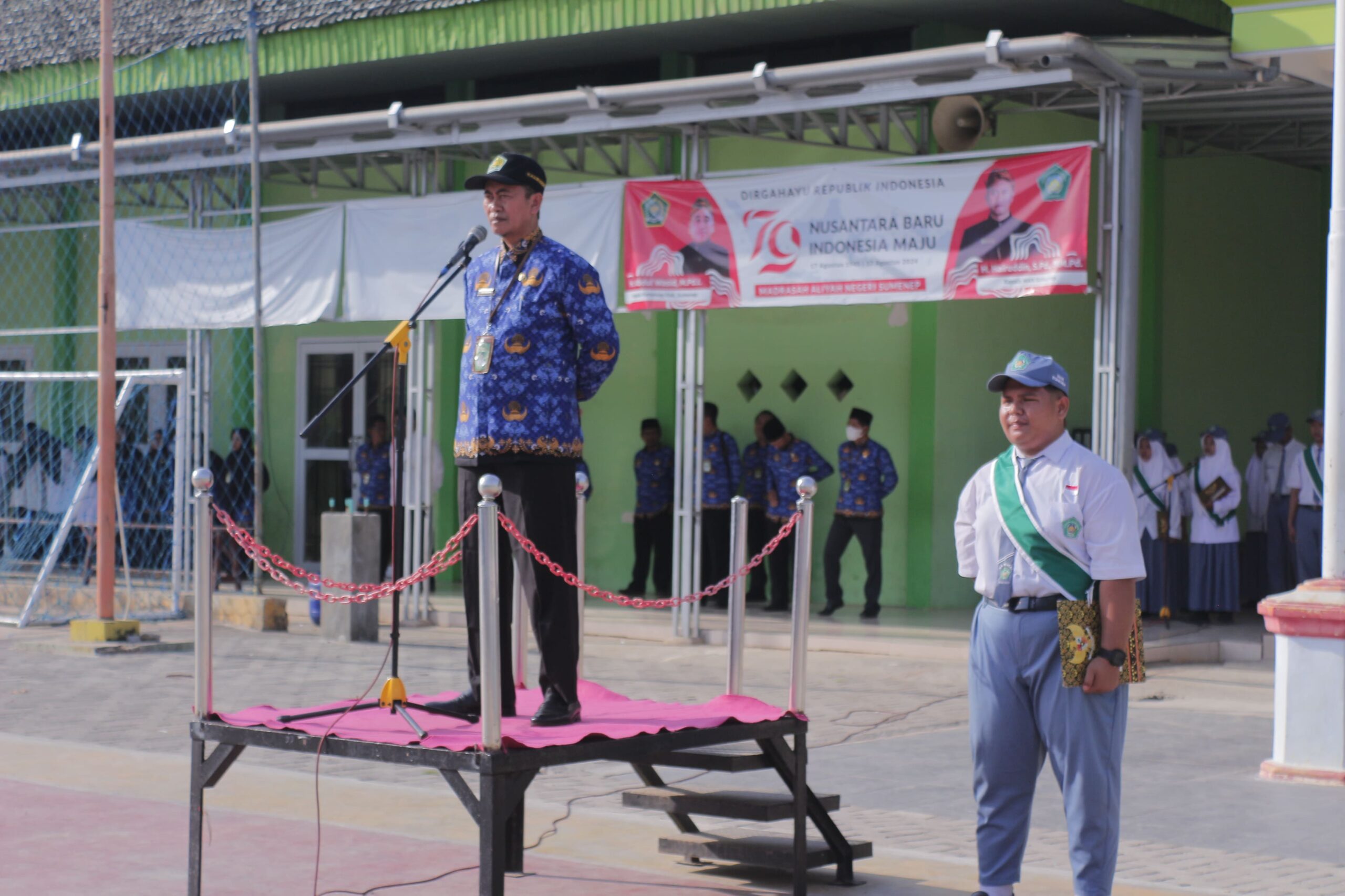 MAN Sumenep – Junalistik – Madrasah Aliyah Negeri Sumenep menggelar upacara Hari Kesaktian Pancasila pada 1 Oktober 2024 di halaman madrasah, (Selasa, 01/10/2024). Sebagai bentuk penghormatan terhadap nilai-nilai luhur Pancasila dan semangat kebangsaan. Kegiatan tersebut dihadiri oleh seluruh siswa, guru, serta staf madrasah, yang mengikuti upacara dengan penuh khidmat. Kepala MAN Sumenep H. Hairuddin , S.Pd., M.M.Pd., dalam amanatnya, menekankan pentingnya peringatan Hari Kesaktian Pancasila sebagai momen refleksi untuk memperkuat persatuan dan kesatuan bangsa, serta menanamkan nilai-nilai Pancasila dalam kehidupan sehari-hari. “Pancasila adalah landasan yang harus kita pegang teguh dalam menghadapi berbagai tantangan bangsa. Generasi muda harus memahami dan menerapkan nilai-nilai ini dalam tindakan nyata, teruskan perjuangan dengan giat belajar untuk menjaga nama baik bangsa dan Negara Indonesia.” Ujar beliau. Upacara berlangsung lancar dan ditutup dengan doa bersama demi kedamaian serta kemajuan bangsa Indonesia. Kegiatan ini diharapkan dapat semakin memperkuat semangat kebangsaan di kalangan siswa, sekaligus membentuk karakter generasi muda yang cinta tanah air dan setia pada Pancasila sebagai ideologi negara. Peringatan Hari Kesaktian Pancasila merupakan bagian dari upaya madrasah dalam menciptakan lingkungan pendidikan yang tak hanya fokus pada ilmu akademis, tetapi juga nilai-nilai moral dan kebangsaan.